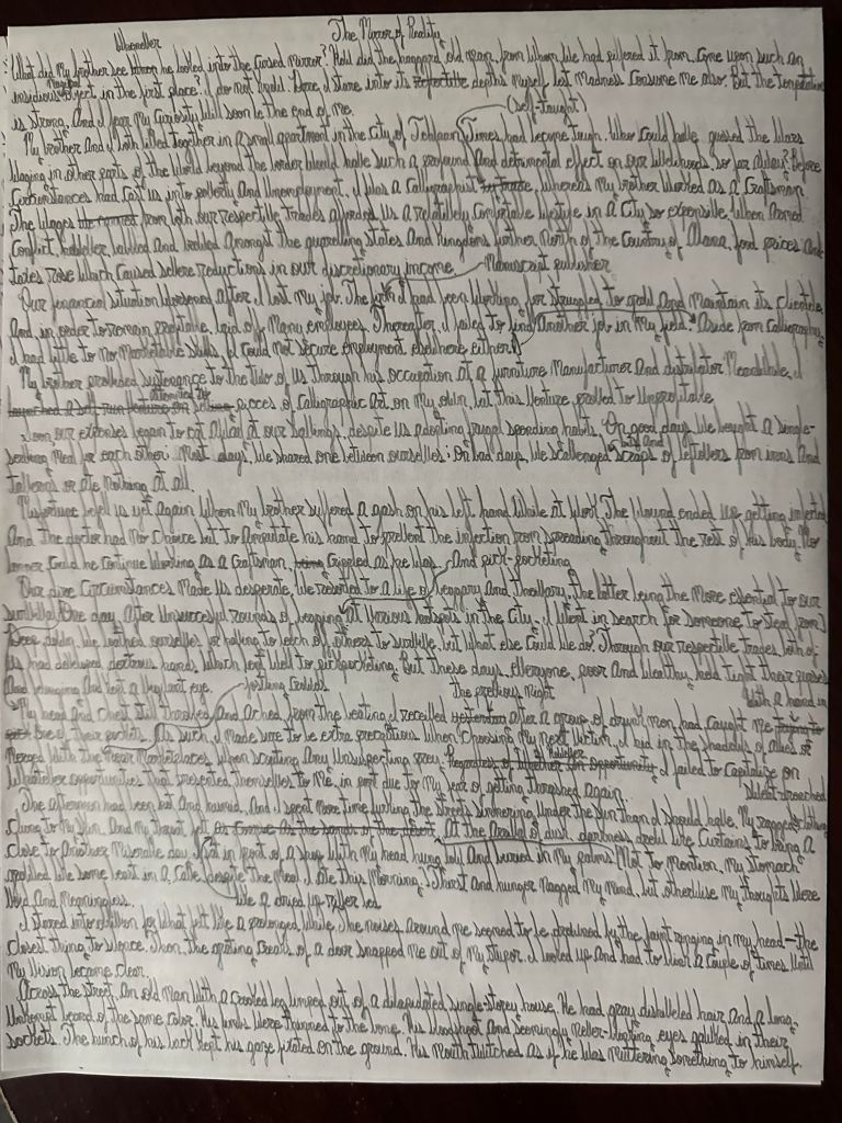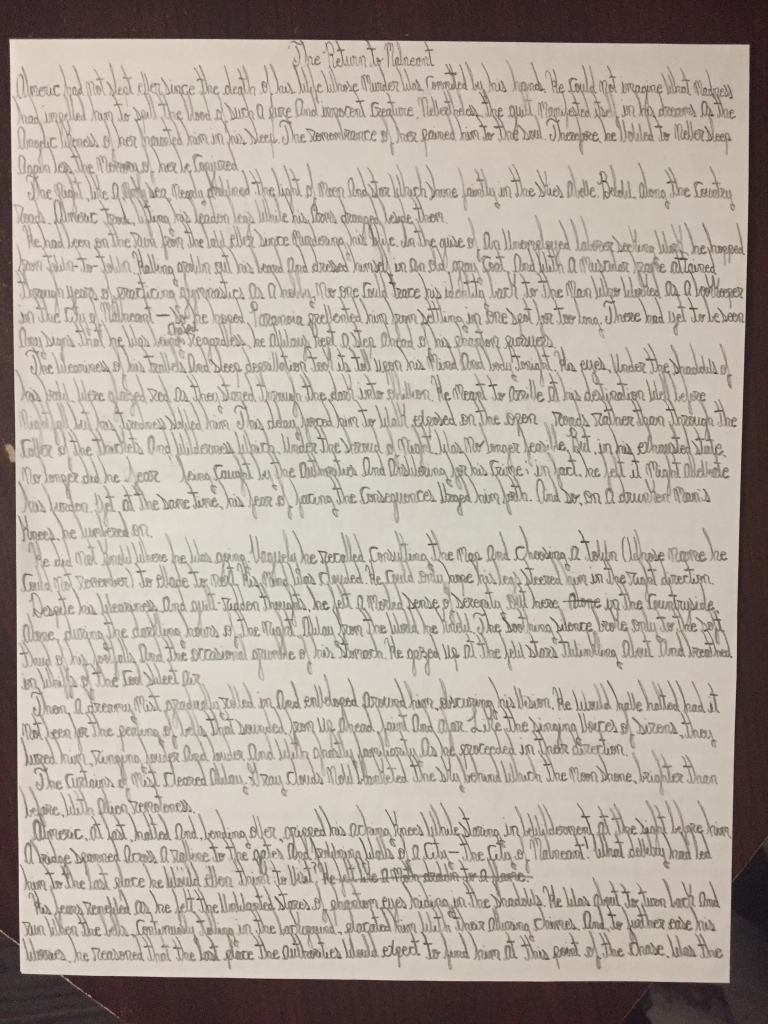 I did not want to let my penmanship rot and wither within me unused. Creative writing served as the most practical and convenient outlet for me to continue exercising my cursive handwriting skills. Along with being its own mode of artistic expression, drafting my stories by longhand helped me improve my writing skills and the overall quality of my manuscripts.